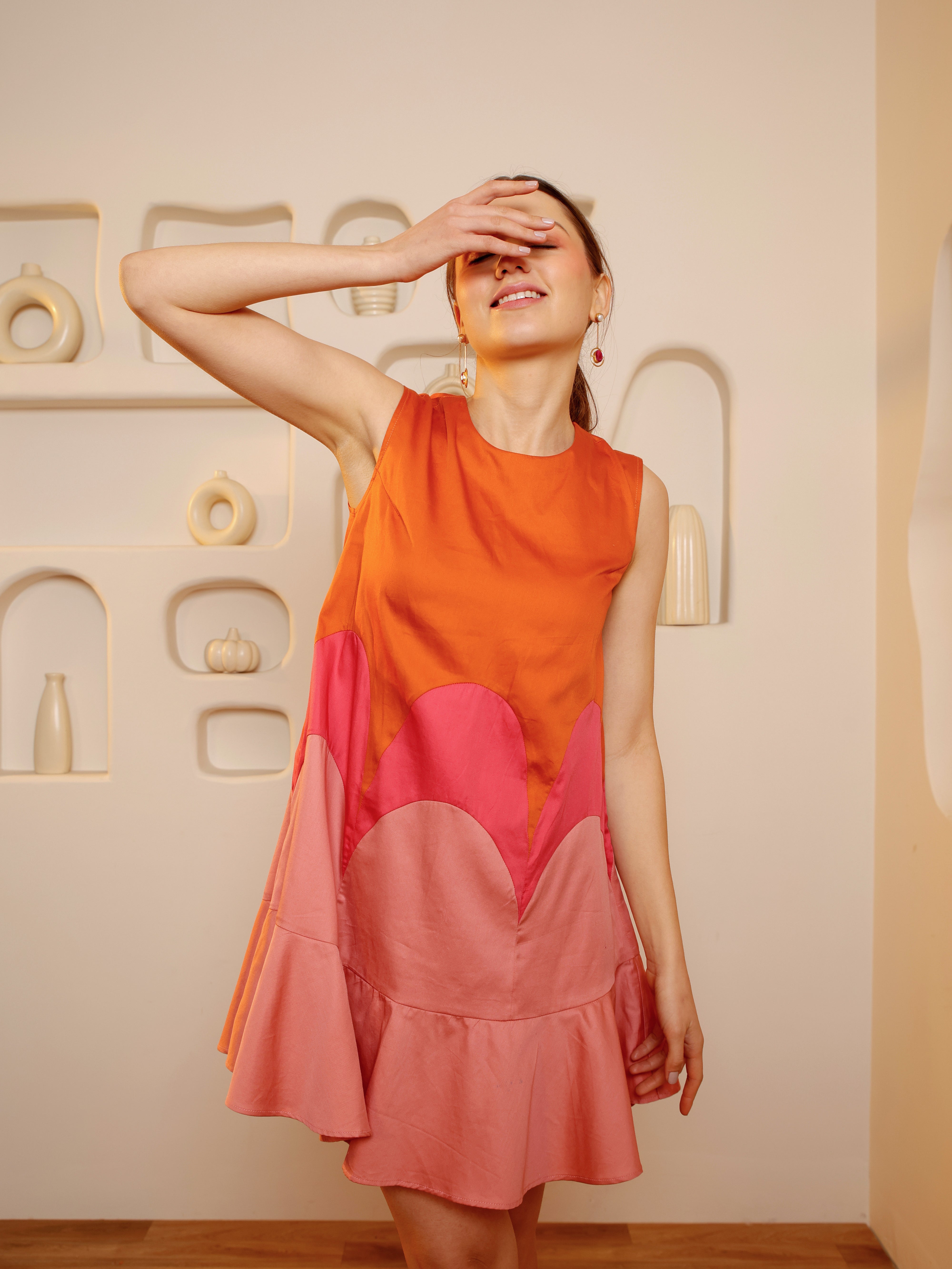The Candy Tiered Mini Dress is to freshen up your wardrobe with its bright colours. It is light and flowy, yet structured through creative construction. With three gorgeous colours at play, it seamlessly transitions from one panel to the next. It has a cloth button at the back keyhole.