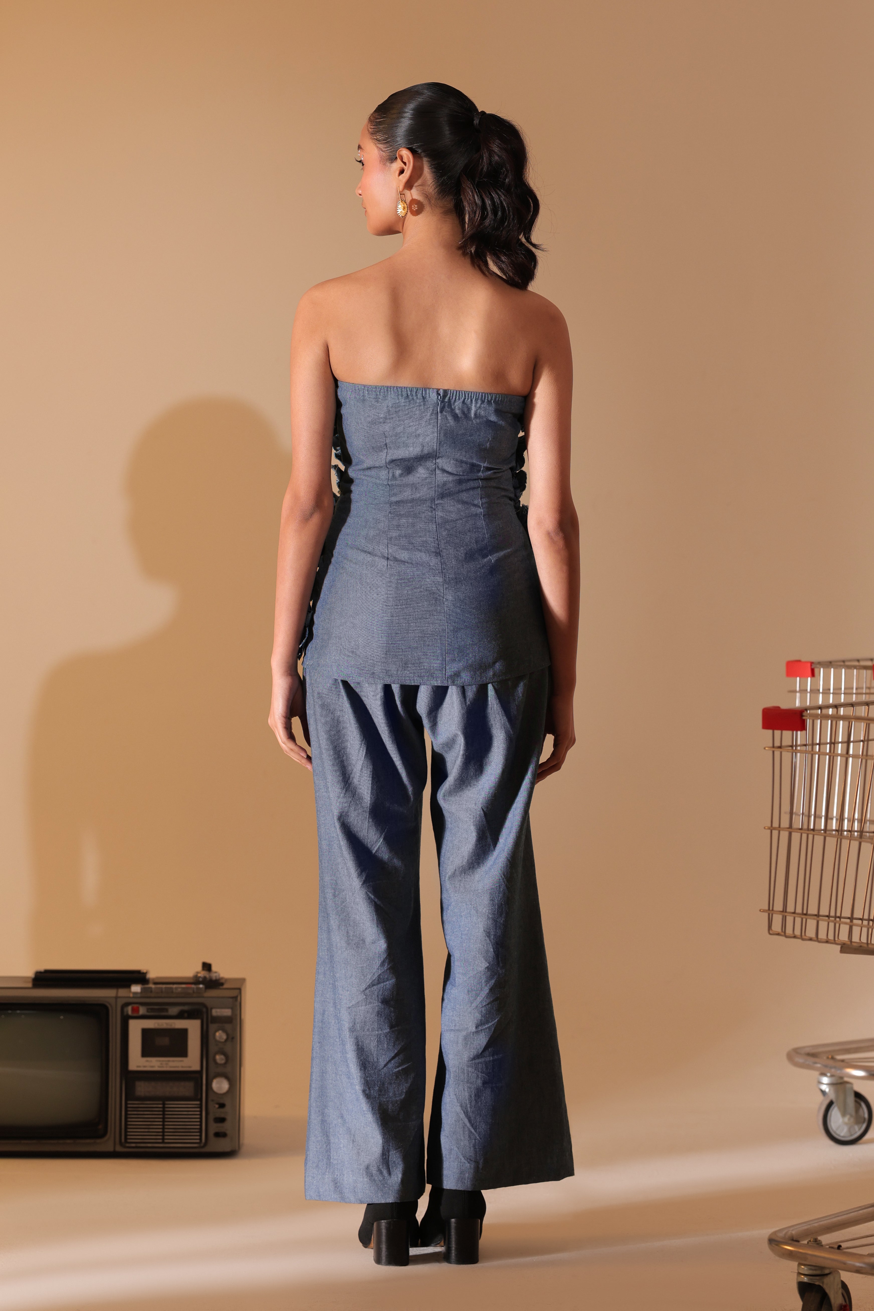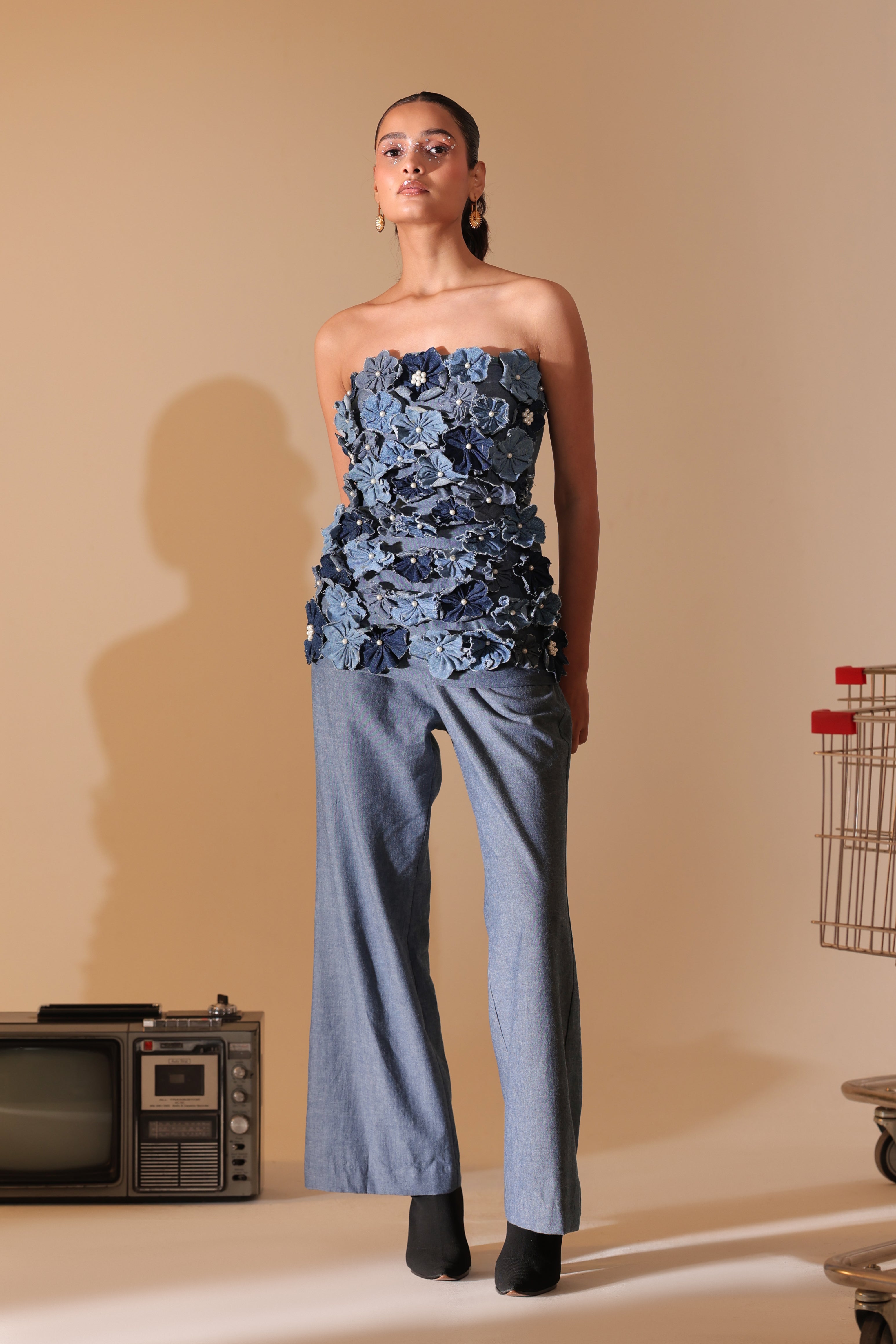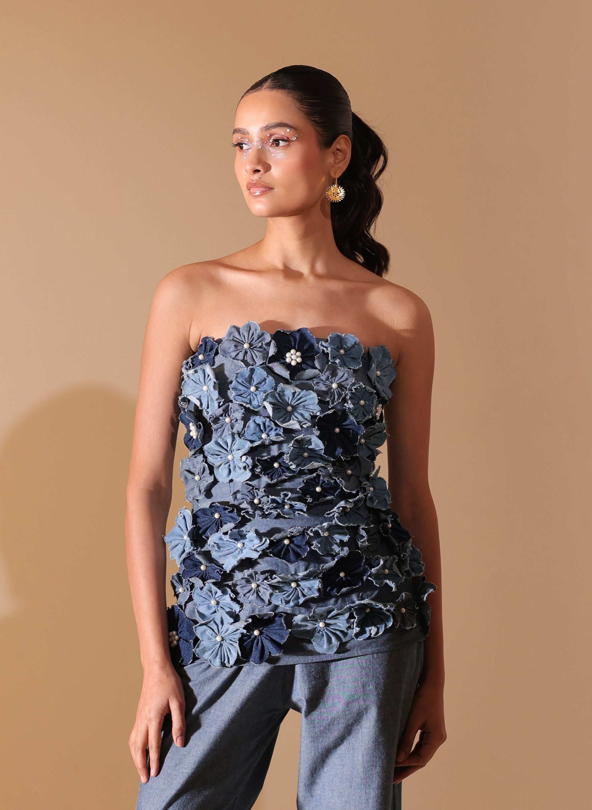Denim Bloom Strapless Top